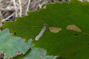 Bei [Bladmineerders.nl (abgefragt 28. Juli 2022)] heißt es dazu: "narrowly polyphagous on woody plants. Alnus glutinosa, incana, viridis; Betula nana, pendula, pubescens; Carpinus betulus; Corylus avellana; Myrica gale. In Britain found only on Birch and (rarely) Hornbeam (Emmet ao, 1996a)." Konkret gezeigt wird aber nur ein Raupensack an Betula pubescens.