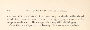- Erstbeschreibung: Meyrick, E. (1920): Descriptions of South African Microlepidoptera. VI. – Annals of the South African Museum 17: 273-318. [Digitalisat auf biodiversitylibrary.org]