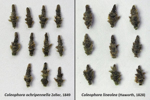 Genitalabbildungen z.B.: Razowski, J.: Motyle (Lepidoptera) Polski 16 - Coleophoridae, p. 175 (♂), p.219 (♀)