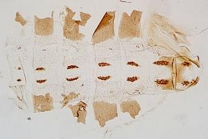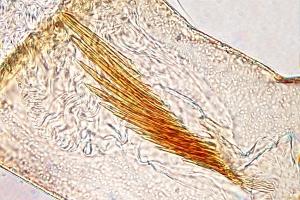 Die Sklerotisierungen auf dem 3. Thoraxsegment sind bei Coleophora lineolea ungleich stärker ausgeprägt als bei Coleophora ochripennella. [Tina Schulz]