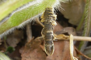 Raupen von Herbst (überwinternd) bis Mai, Jungraupen bereits im Sommer. Im Spätsommer legen die Jungraupen eine kurze Diapause ein (etwa Mitte August bis Mitte September, Zuchtbeobachtung von Tina Schulz).