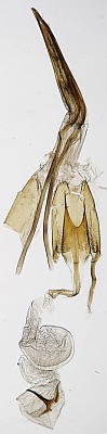 Aber woher stammt die Angabe zu Onopordum ? Wie der Artname des Falters andeutet geht die Meldung auf die Erstbeschreibung zurück. Zeller (1849: 213-215) kannte weder die Raupe noch den Falter aus dem Freiland; letzteren erhielt er als Ergebnis einer Sammelreise von Mann nach Ofen (Budapest); der Namen "onopordiella" geht dabei auf den Vorschlag von Mann zurück. Zeller (1849: 214-215) liefert eine detaillierte Beschreibung des Raupensacks, die er umrahmte mit den Worten: „Mann entdeckte diese Art als Raupe bei Ofen auf dem Blocksberge, wie aus dem Namen der Species zu schliessen, auf Onopordum acanthium. Der feste Sack ist […]. Näheres über die Lebensweise ist mir nicht bekannt.“ Mann fand also offensichtlich einen bereits festgesponnenen Raupensack und vermutete, dass die Pflanze, an dem er hing, auch die Raupennahrungspflanze sein könnte - offensichtlich irrte er sich darin. Onopordum als Raupennahrung ist jedenfalls überhaupt nicht belegt und auch nie mehr beobachtet worden.