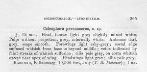 - Baldizzone, G. & H. W. van der Wolf (2003): A taxonomic review of the Coleophoridae (Lepidoptera) of the Indian subcontinent and Sri Lanka described by Edward Meyrick. — Tijdschrift voor Entomologie 146: 1-31. [Zum PDF auf brill.com]