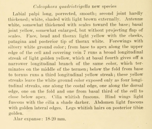 - Erstbeschreibung: Busck, A. (1913): New Californian Microlepidoptera. — Journal of Entomology and Zoology 5 (2): 96-102.