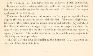 Clemens ([1862]: 80) beschrieb die Art nach der Raupe und dem Raupensack. Er macht keinerlei Angaben zum Fundort und zum von ihm untersuchten Material.