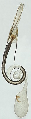Jukka Tabell, dem ich die Bilder in der Folge zeigte, schreibt: "....The specimen belongs to the vulnerariae-group (dark apophyses), and because of long apophyses, there are not many candidates. It is very close to C. brunneosignata, and one species which sometimes is considered as a synonym of this species is C. supinella. I guess that the specimen belongs to C. supinella, but I have never seen the photo of the genitalia of this species, I have only the small picture of Ortner. But I can't give you a better opinion".