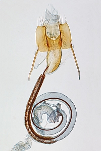 Genitalabbildungen z.B.: Razowski, J.: Motyle (Lepidoptera) Polski 16 - Coleophoridae, p. 204 (♂), p.239 (♀)