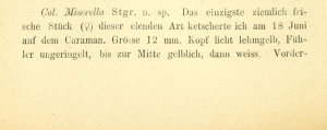 - Beschreibung als Coleophora miserella: Staudinger, O. (1879-1880 [159-368: 1879; 369-435: 1880]): Lepidopteren-Fauna Kleinasien's. — Horae societatis entomologicae rossicae 15: 159-435. St. Pétersbourg (V. Besobrasoff & Comp.).