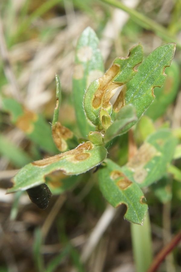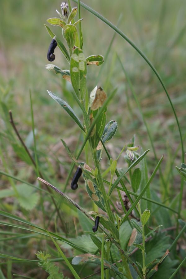 1-2: Raupensäcke und braune Minenflecke an Färber-Ginster (Genista tinctoria): Deutschland, Thüringen, Kyffhäuser-Südrand bei Rottleben, ca. 260 m, 4. Juni 2014 (det. & Freilandfotos: Heidrun Melzer)Forum