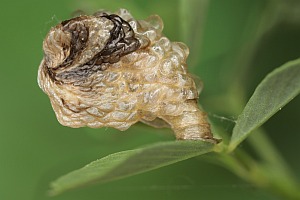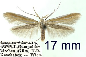 Seltsam in diesem Zusammenhang ist die Synonymisierung mit Coleophora gypsophilae Christoph, 1862, denn in der Erstbeschreibung jenes Taxons heißt es ausdrücklich: "Ich fand mehrere dieser Sorte mit Puppe in der letzten Hälfte des Juli bei Sarepta an Gypsophila paniculata, deren unreife Samenkapseln die Raupen benagt hatten. Doch schienen sie die Samen nicht anzugreifen. Der Schmetterling entwickelte sich zu Anfang August." Der Erklärungsversuch auf [bladmineerders.nl] ("The synonymous C. gypsophilae is reported to live on Gypsophila paniculata; perhaps this was case of xenophagy?") erscheint mir nicht befriedigend, denn es war ja nicht ein Exemplar, sondern deren mehrere. Und das Rispige Gipskraut gehört in eine ganz andere Pflanzenfamilie (Nelkengewächse) und an Gipskräutern der Gattung Gypsophila leben eine ganze Reihe Coleophora-Arten; die Beschreibung des Sacks passt aber ganz sicher zu keiner von jenen, sondern eben am ehesten tatsächlich zu C. vicinella. Es bleibt also rätselhaft.