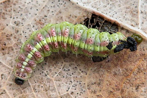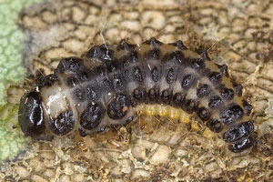 12: (12: links an Liguster, rechts an Esche), Larven vom Eschen-Blattschaber Stereonychus fraxini (Curculionidae): Larve an Liguster (Ligustrum sp.): Deutschland, Niedersachsen, Region Hannover, Rodenberg, 80 m, 24. Mai 2017 / Larve an Esche (Fraxinus excelsior): Deutschland, Niedersachsen, Wunstorf, Bahnhofsgelände, 50 m, 22. Mai 2017 (det. & Freilandfotos: Tina Schulz)