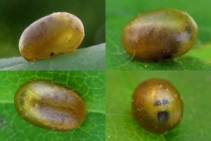 13: Kokon mit unverpuppter Larve vom Eschen-Blattschaber Stereonychus fraxini (Curculionidae) auf Eschenblatt (Fraxinus excelsior): Deutschland, Niedersachsen, Wunstorf, Bahnhofsgelände, 50 m, 28. Mai 2017 (det. & Freilandfotos: Tina Schulz)
