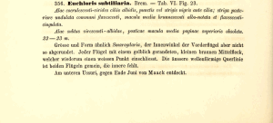 - Erstbeschreibung: Bremer, O. (1864): Lepidopteren Ost-Sibiriens, insbesondere des Amur-Landes, gesammelt von den Herren C. Radde, R. Maack und P. Wulffius. — Mémoires de l'Académie impériale des sciences de St.-Pétersbourg, VIIe Série 8 (1): 1-103, pl. I-VIII.