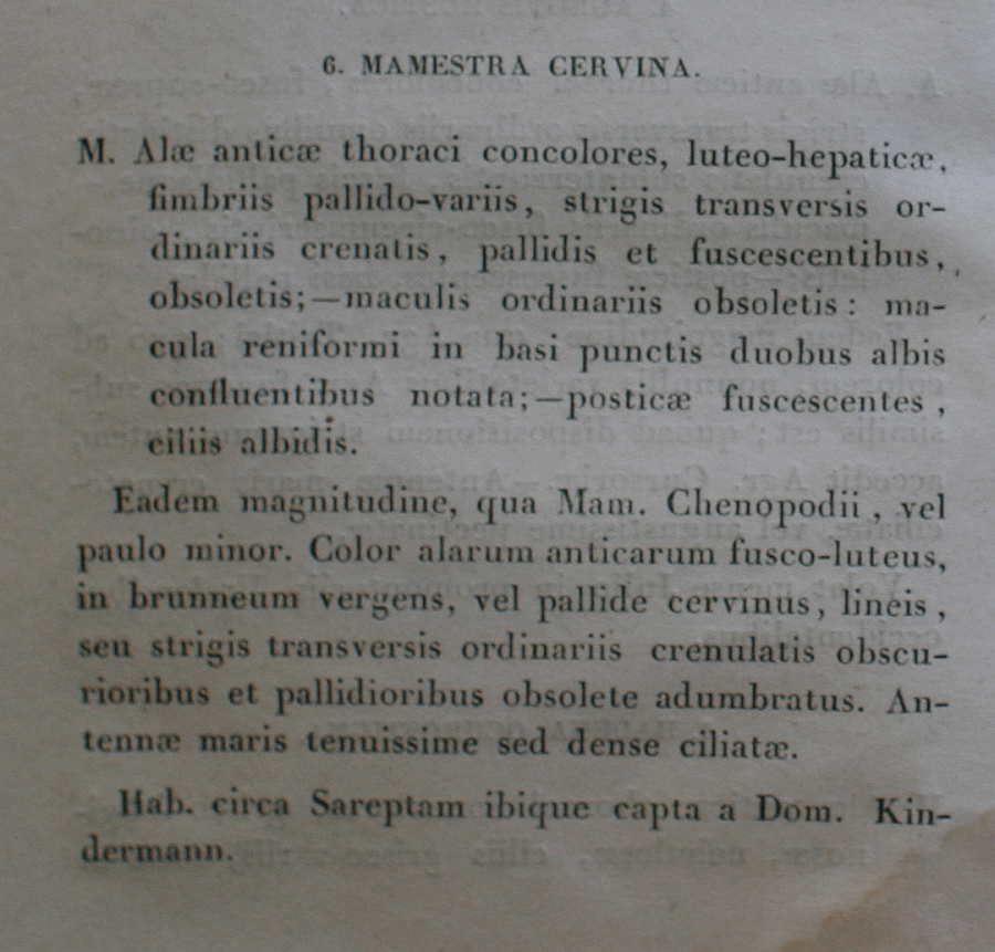 - Mamestra cervina Eversmann, 1842 [Originalkombination]