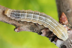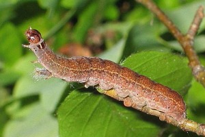 1: Fund einer Raupe an Prunus spinosa (Schlehe): Deutschland, Niedersachsen, Region Hannover, Sehnde, Ladeholz, 70 m, 18. Mai 2017 (Foto: Tina Schulz)
