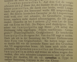 - Erstbeschreibung: Schawerda, K. (1926): Neue Lepidopterenformen aus den korsischen Bergen. — Deutsche Entomologische Zeitschrift „Iris“ 40 (2-3): 147-153.