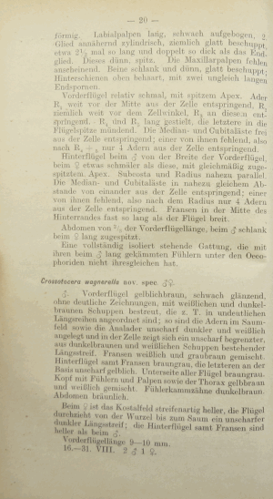 - Šumpich, J. & I. Richter (2023): Description of hitherto unknown female genitalia of Crossotocera wagnerella Zerny, 1930, in Wagner (Lepidoptera: Oecophoridae). — SHILAP Revista de lepidopterología 51 (201): 95-99. [PDF auf shilap.org]