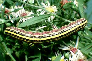 „Aster, Nahrungspflanze der Raupe.“