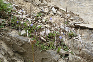 2-3: vertikaler, fast vegetationsloser Fels mit Campanula spec.: Österreich, Vorarlberg, Lechtal, Warth-Lech, ca. 1400 m, 18. August 2016 (Fotos: Christian Siegel)Forum