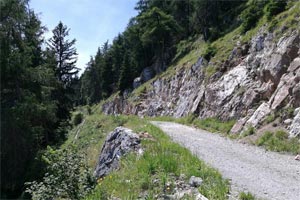4: Larvalhabitat mit aus den Felsspalten wachsenden Campanula rotundifolia, Österreich, Steiermark, Graz, Schöckl (Grazer Hausberg), sonnige, felsige, Forststraße, ca. 1300 m, 28. Juni 2021 (Foto: Horst Pichler)Forum