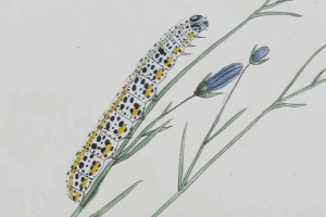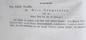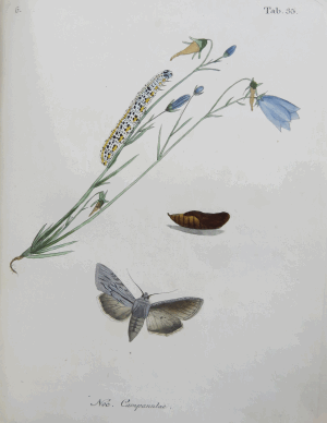 „Campanula, Glockenblume, Nahrungspflanze der Raupe.“