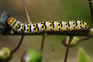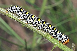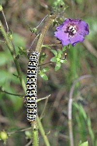 Die Raupen nehmen unter Zuchtbedingungen auch Verbascum lychnitis und V. nigrum gerne an und haben sich wiederholt an diesen Pflanzen ohne Probleme fertig entwickelt. (Helmut Deutsch)