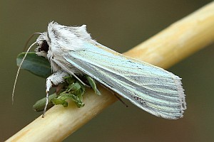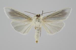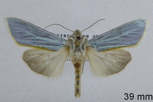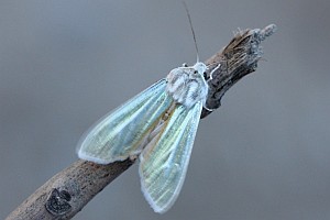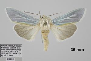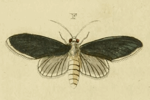 Die grauschwarzen Vorderflügel auf diesem Bild waren ursprünglich weiß oder silberweiß, chemische Umwandlung des Farbstoffs Bleiweiß (siehe im Glossar).