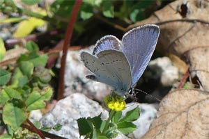 Anfang 2023 schrieb ich: "Nachdem die Art in der Schweiz als Arealerweiterer schon seit Jahrzehnten nahe der Grenze zu Deutschland gefunden wurde, war ein Fund in Deutschland eigentlich überfällig. Doch Suchen blieben lange negativ, auch noch 2020. Der erste sichere Nachweis erfolgte am 4. Juli 2022 durch Bernhard Disch bei Waldshut (Bilder siehe oben), und zwar einschließlich Eiablage-Beobachtung in Blütenköpfchen von Medicago lupulina (insgesamt mindestens 3 Falter beiderlei Geschlechts). Thomas Stalling fand am 7. August 2022 einen frischen Falter bei Grenzach-Wyhlen (siehe [observation.org]); eine Woche später gelang ihm ein weiterer Fund in der Region." Doch schon am 24. Januar 2023 war dieser Text überholt, denn Chris van Swaay fand auf [observation.org] noch einen (bisher fehlbestimmten) Falter dieser Art, ein frisches Männchen, den Norbert Scheydt am 23. April 2020 am Ostrand des Pfälzerwaldes 1 km westlich Pleisweiler-Oberhofen, also gut 25 km nördlich der Grenze zu Frankreich (Rheinland-Pfalz) fotografiert hatte. Ob sich die Art dort etabliert hat, werden weitere Beobachtungen zeigen müssen.