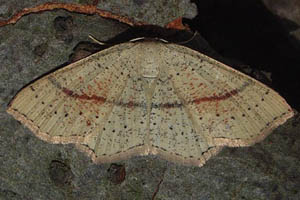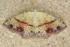 Cyclophora ruficiliaria (b), Cyclophora linearia (e) (Hinweis: bei der 2. Generation von C. linearia kommen öfters rötliche Binden vor!)