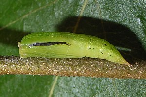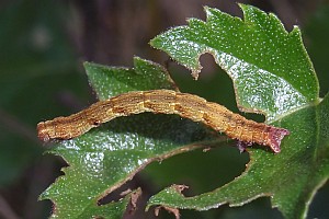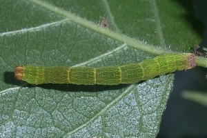 1: Dänemark, Jutland, Grenaa, 10 m, ca. 2 km von der Küste, in einer Plantage, Raupen auf Birke (Betula pendula), 25. September 2013 (det. & fot.: Kjeld Brem Sørensen)Forum
