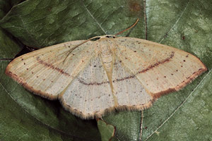 Cyclophora ruficiliaria (b), Cyclophora linearia (e) (Hinweis: bei der 2. Generation von C. linearia kommen öfters rötliche Binden vor!)