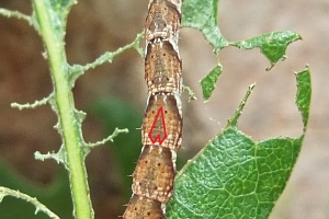 Cyclophora porata (a), gelegentlich auch Cyclophora linearia (e).