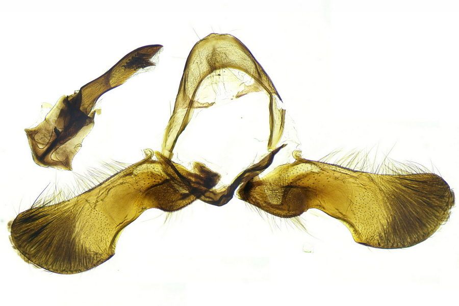 Cydia millenniana entwickelt sich im Holz der Lärche (Larix decidua). Die Raupen brauchen 2 Jahre für ihre Entwicklung. Im ersten Jahr leben sie äusserlich nicht erkennbar unter der Rinde junger Zweige. Im Laufe der Entwicklung bildet die Lärche an der Stelle des Befalls eine unregelmässige Astverdickung. Diese Gallen verraten die Anwesenheit der Raupe etwa ab Spätsommer des zweiten Jahres. Im Bild erkennt man die Galle einer Raupe in ihrer zweiten Überwinterung. Der Bohrmehlauswurf ist äusserst gering, die Stelle ist allerdings auffällig harzig. Die alten, bereits verlassenen Astverdickungen bleiben noch Jahre lang sichtbar, befinden sich aber dann nicht mehr im Bereich der Zweig-Enden. Die Raupe lebt in der Astgalle in einem dicht ausgesponnenen Frassgang, der kaum länger ist als sie selber. Dieses Raupengehäuse schwimmt förmlich im Harz, von dem sich die Raupe offensichtlich ernährt. Für die Aufnahme wurde die Raupe aus der Gespinströhre heraus präpariert. Die Verpuppung erfolgt im Frühling nach der zweiten Überwinterung in der Gespinströhre der Raupe. Die Aufnahme zeigt die geöffnete Gespinströhre mit einer bald schlupfreifen Puppe. Wie Cydia pactolana arbeitet sich die Puppe vor dem Schlüpfen aus der Gespinströhre nach aussen. Ich wundere mich, dass sie dies schafft, muss sie doch in den meisten Fällen eine zäh-klebrige Harzschicht durchstossen. Die dunkel schiefergrauen Falter verfügen über einen ausgeprägten stahlblauen Glanz, der ihnen je nach Lichteinfall geradezu ein exotisches Aussehen verleiht. [Rudolf Bryner]