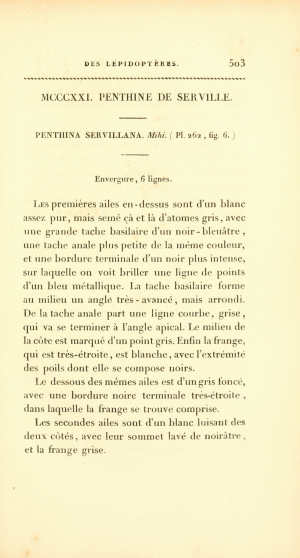 - Erstbeschreibung: Godart, J.-B. & P.-A.-J. Duponchel (1834-[1836]): Histoire naturelle des lépidoptères ou papillons de France. Tome neuvième: 1-626, [627], pl. CCXXXVII-CCLXVI. Paris (Méquignon-Marvis).