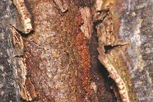 Razowski (2001: 91) lässt ausgerechnet die doch am besten abgesicherte Ulme weg: "R[inde]; Fagus (Fagaceae), Acer pseudoplatanus (Aceraceae) und andere Laubbäume z.B. Salix (Salicaceae), Betula (Betulaceae)." Die Quellen für die Angaben zu den beiden letztgenannten Pflanzen sind mir noch unklar.