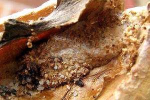 1: Befallsbild in Walnuss, Deutschland, Baden-Württemberg, Bötzingen am Kaiserstuhl, 25. September 2007 (leg., cult., det. & Foto: Gabi Krumm)Forum