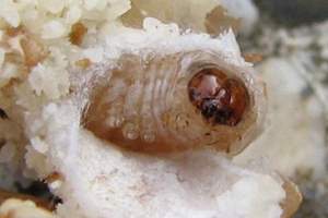 5: Vorpuppe, Deutschland, Baden-Württemberg, Bötzingen am Kaiserstuhl, in einer Walnuss, 25. September 2007, Foto 15. Februar 2008 (leg., cult., det. & Fotos: Gabi Krumm)Forum