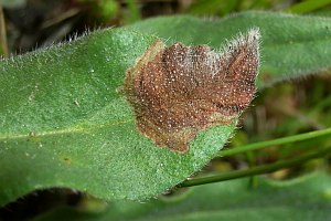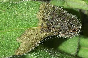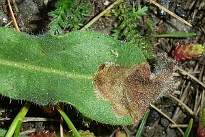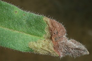 5: Mine der Altraupe, Deutschland, Sachsen, Doberschütz, Bahngelände, Blattmine an Natternkopf (Echium vulgare) 13. Mai 2008 (Foto: Heidrun Melzer), cult. & det. Heidrun MelzerForum