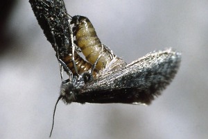 Bei der ersten Gruppe schiebt sich die Puppe vor dem Schlüpfen aus dem Sack, das Weibchen schlüpft und bleibt aussen am Sack sitzen, wo es sofort mit dem Anlocken der Männchen beginnt (Falterbild 2). Die Paarung findet ausserhalb des Raupensackes statt (Falterbild 3). Sofort nach der Paarung legt das Weibchen den gesamten Eiervorrat in den Raupensack ab (Falterbild 4) und stirbt dann meistens noch gleichentags.