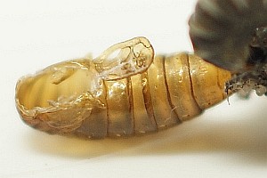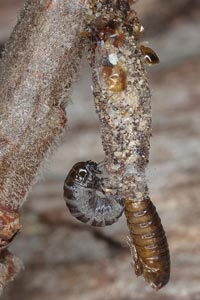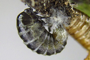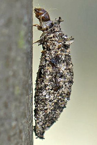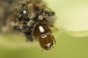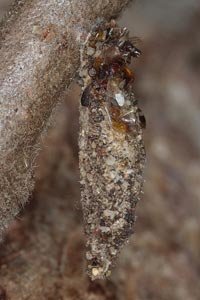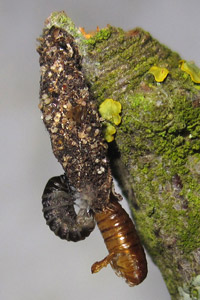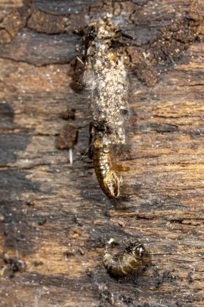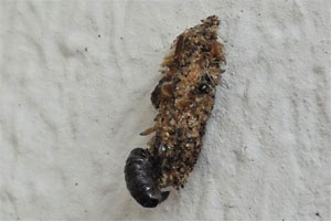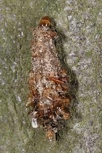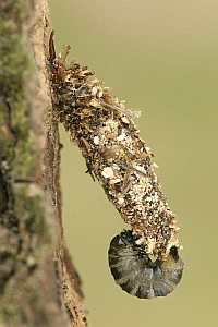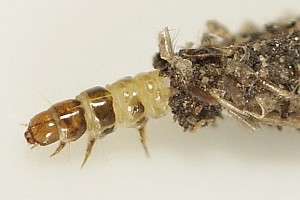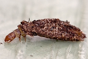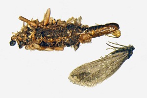 "Typisch für Dahlica triquetrella sind der braune Kopf, der breite Sack und die angesponnenen Chitinteile (letzteres auch bei Diplodoma, aber der Sack sieht anders aus)." [Erwin Hauser]