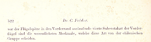 - Erstbeschreibung: Felder & Felder (1864-1867): Reise der österreichischen Fregatte Novara um die Erde in den Jahren 1857, 1858, 1859 unter den Befehlen des Commodore B. von Wüllerstorf-Urbair. Zoologischer Theil. Zweiter Band. Zweite Abtheilung: Lepidoptera. I-VI, 1-549. Wien (Kaiserlich-königliche Hof- und Staatsdruckerei).