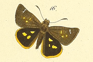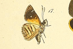 - Erstbeschreibung: Felder & Felder & A. F. Rogenhofer (1864-1867): Reise der österreichischen Fregatte Novara um die Erde in den Jahren 1857, 1858, 1859 unter den Befehlen des Commodore B. von Wüllerstorf-Urbair. Zoologischer Theil. Zweiter Band. Zweite Abtheilung: Lepidoptera. Atlas: 1-10 (Inhalts-Verzeichniss pl. I-LXXIV), 1-10 (Erklärung der Tafeln LXXV-CVII), 1-20 (Inhalts-Verzeichniss Tafeln CVIII-CXL), pl. I-CXL.