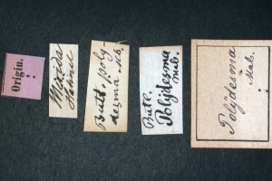 1-3: Syntypus ♂, Daten siehe Etiketten (fot.: Bernard Hermier, Fotos bearbeitet: Michel Kettner), coll. Zoologisches Museum der Humboldt-Universität zu Berlin.
