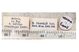 1: ♂, Peru, Cusco, Manu Road, Pillahuata, 2500 m, 1. November 2014 (fot.: David Geale), Bild über Kim Garwood erhalten, det. Bernard Hermier