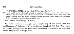 - Erstbeschreibung, Text: Godman, F. D. & O. Salvin (1887-1901): Biologia Centrali-Americana. Insecta. Lepidoptera-Rhopalocera. Vol. II.: 1-782. [London] (Taylor and Francis). — Digitalisat auf biodiversitylibrary.org: [466]