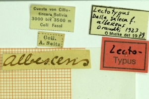4-6: Lectotypus ♂ von Dalla albescens Draudt, 1923, Daten siehe Etiketten (fot.: Ernst Brockmann, Fotos bearbeitet: Michel Kettner), coll. Senckenberg Museum für Tierkunde, Frankfurt.