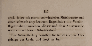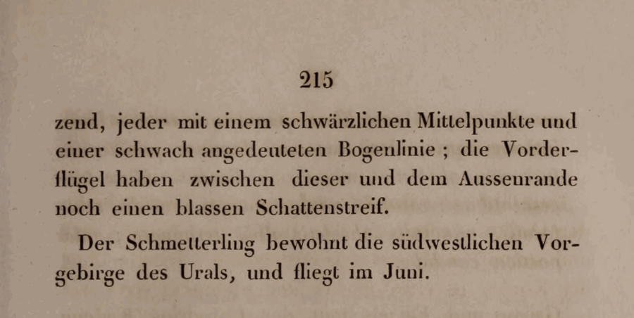 - Erstbeschreibung: Eversmann, E. (1848): Beschreibung einiger neuen Falter Russlands. — Bulletin de la Société impériale des naturalistes de Moscou 21 (3): 205-232. — Digitalisat von Google Books im Viewer der Hathi Trust Digital Library: [213].
