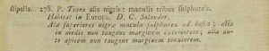- Lectotypus-Festlegung: Robinson, G. S. & E. Schmidt Nielsen (1983): The Microlepidoptera described by Linnaeus and Clerck. — Systematic Entomology 8: 191-242.