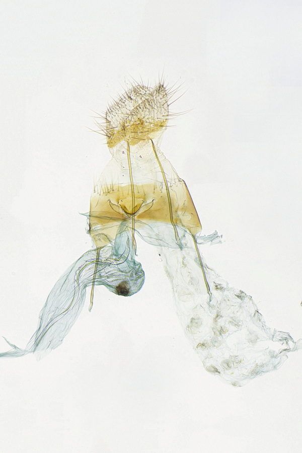 1: 10 mm, noch nicht erwachsen, ♀: Österreich, Niederösterreich, 1,5 km N Schwarzau am Steinfeld, lichtungs- und laubholzreicher Schwarzföhrenforst, leg. Raupe zwischen 2 aufeinandergesponnenen Blättchen von Kleiner Bibernelle (Pimpinella saxifraga) 22. Mai 2008 (Foto: Peter Buchner)Forum