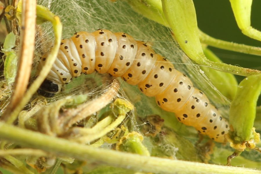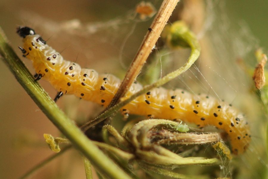 Die Raupe ernährt sich von Knospen, Blüten und Samen.